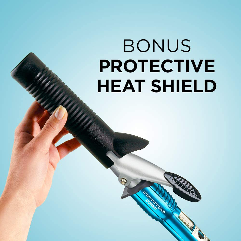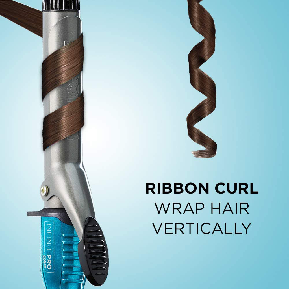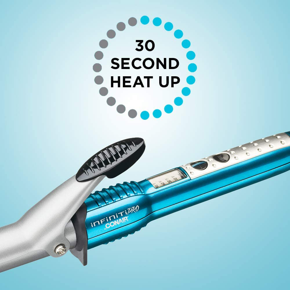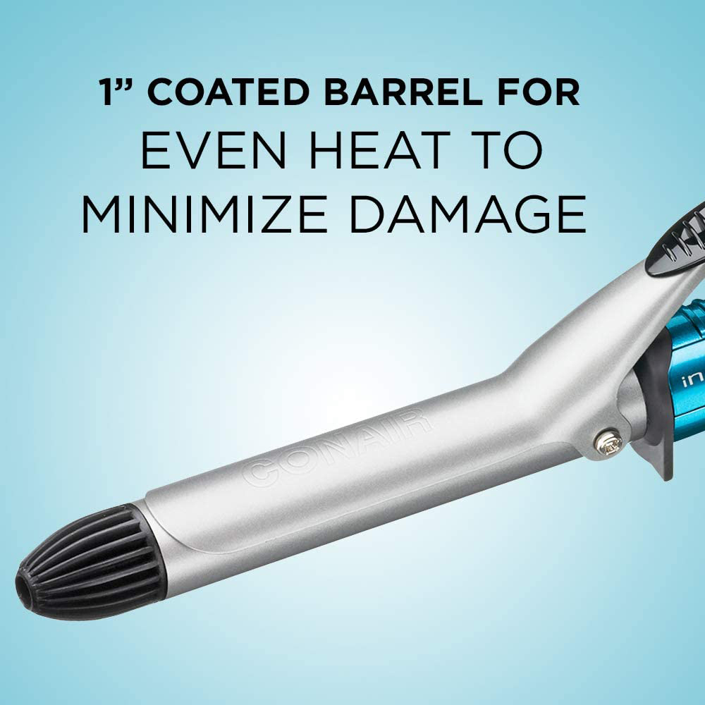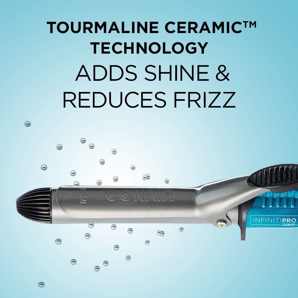 Get beautiful, shiny curls with the Conair Infiniti pro 1 inch Nano tourmaline ceramic curling iron. The technology fuses micro particles of tourmaline ceramic and silver to emit natural frizz-reducing ions for long-lasting curls and waves. Even with ultrahigh heat levels up to 400 Degree, the far-ir technology generates hair-friendly heat that’s gentle on hair, retains moisture and enhances shine.